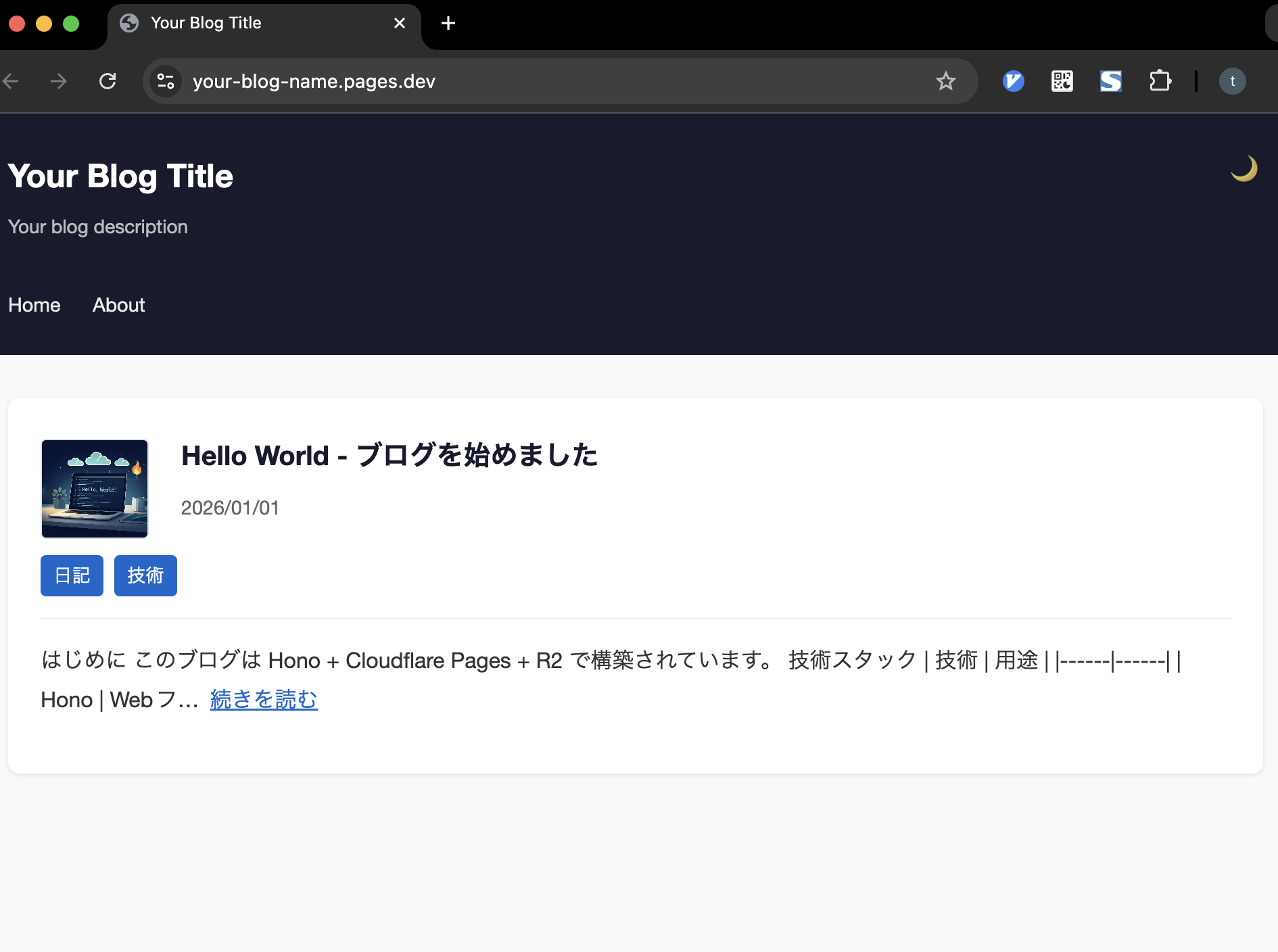 「ブログを自分で作ってみたい」「Cloudflare Pages + Honoを触ってみたい」という方の参考になればうれしいです。
